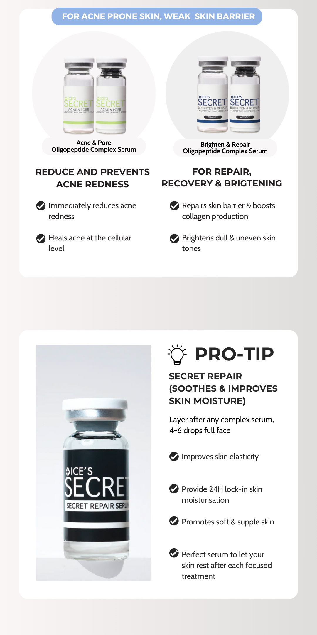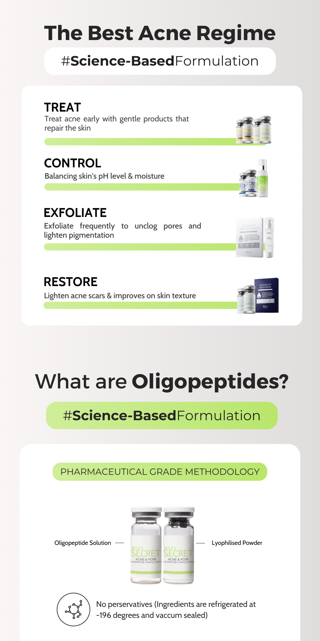 Pour the oligopeptide solution into the oligopeptide lyophilised powder. Shake until completely combined and secure the serum bottle with the application cap provided. Apply 6-8 drops over the face, twice daily. Refrigerate between uses.